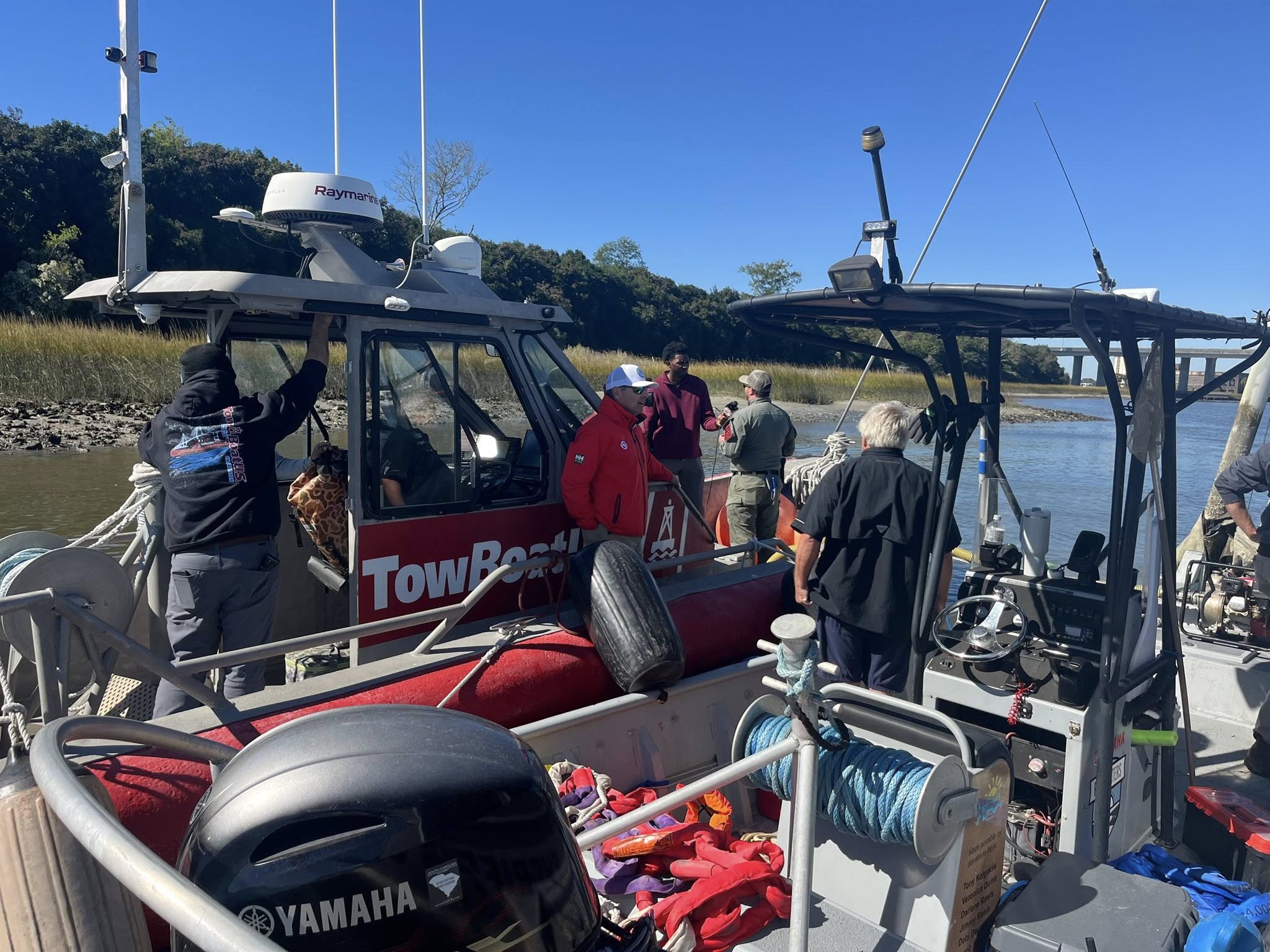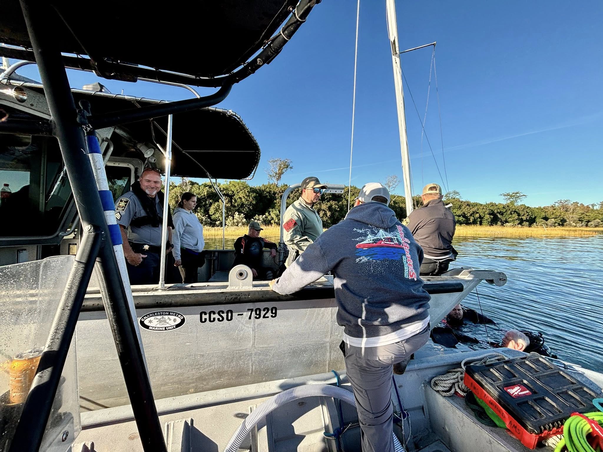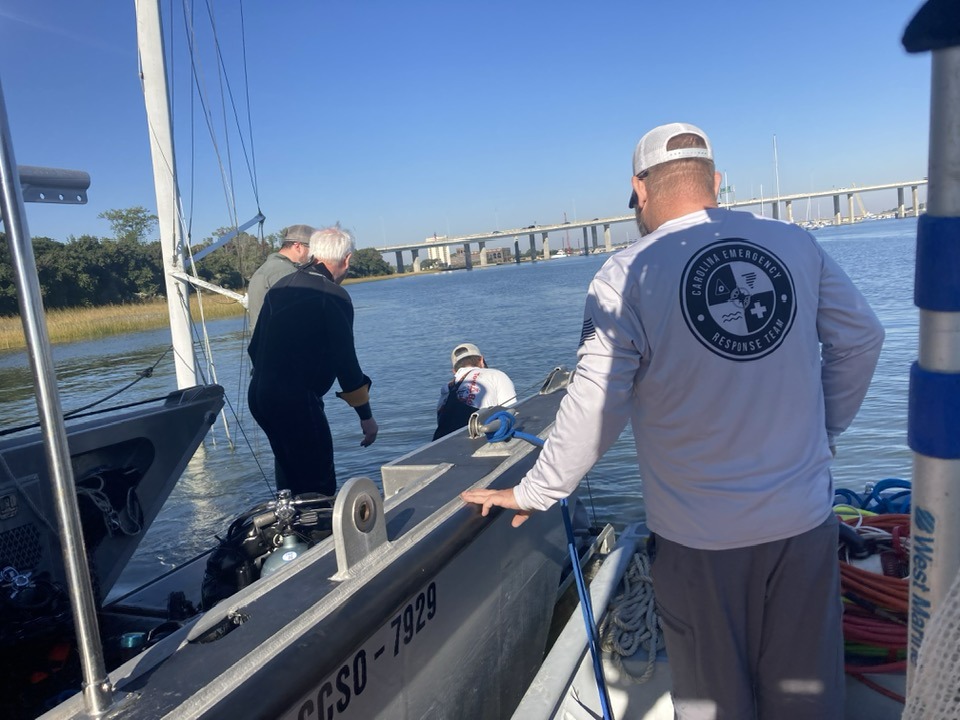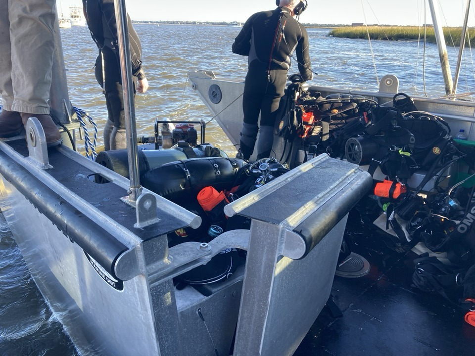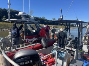 Towboat Charleston’s salvage dive team, Greg, Thomas, Bobby, Matt, and Jamie, volunteered their time to train the Charleston County Sheriff’s Department’s dive team on safe boat removals.