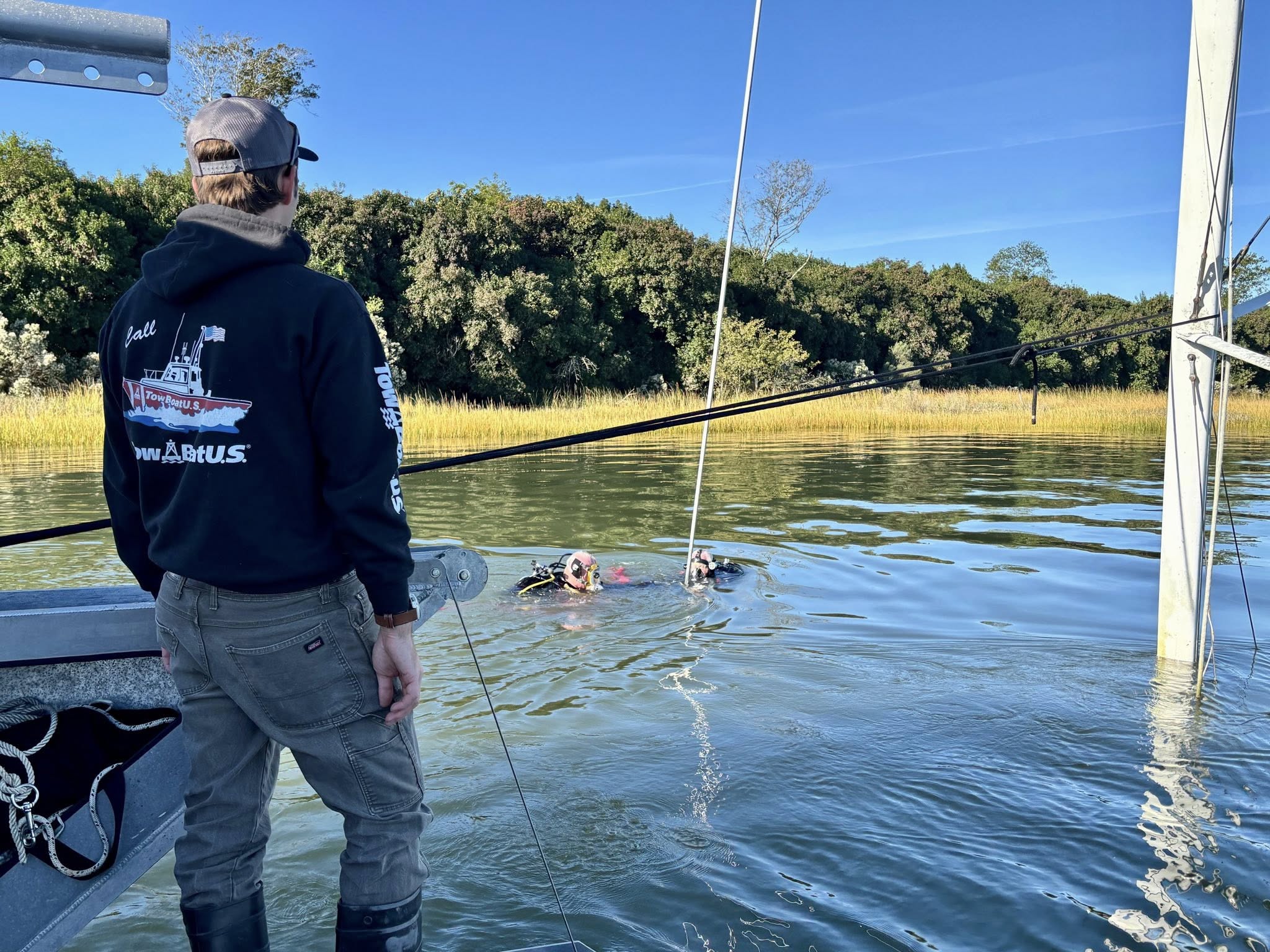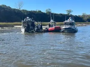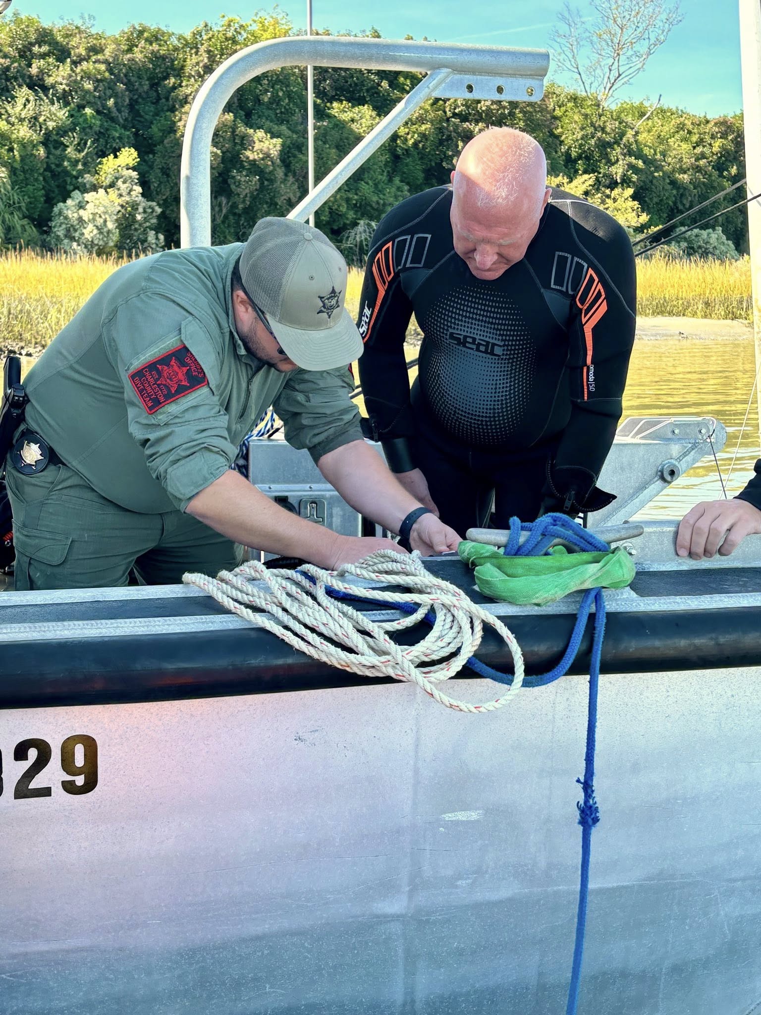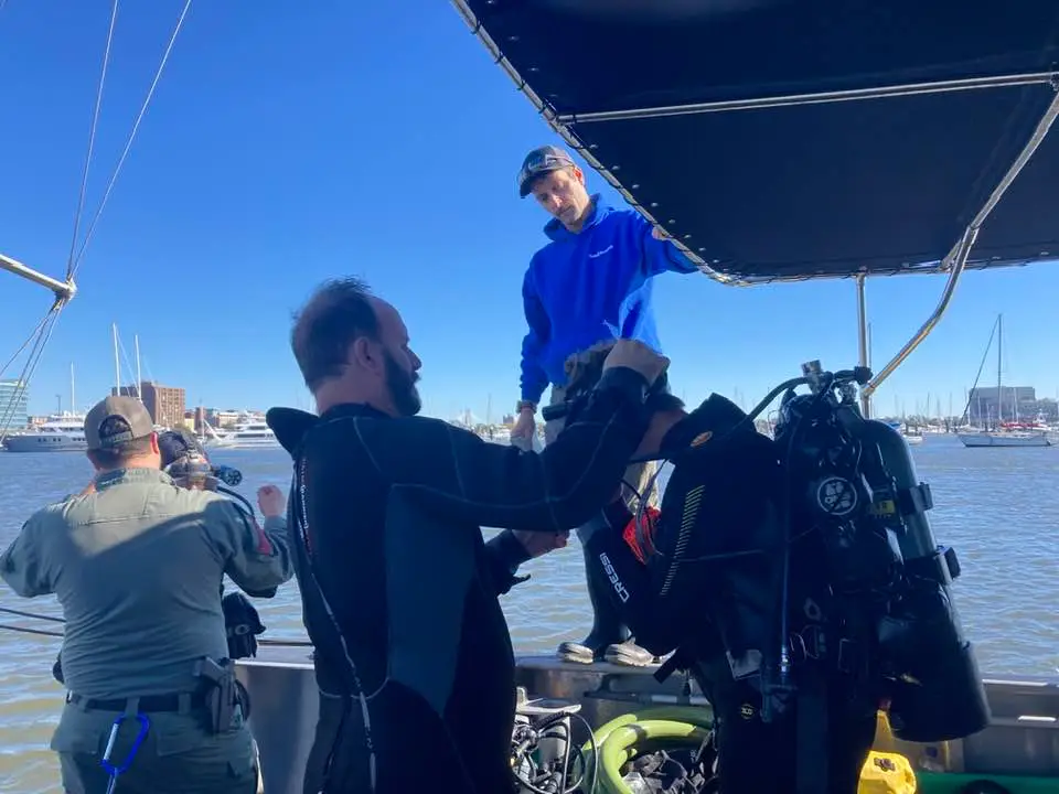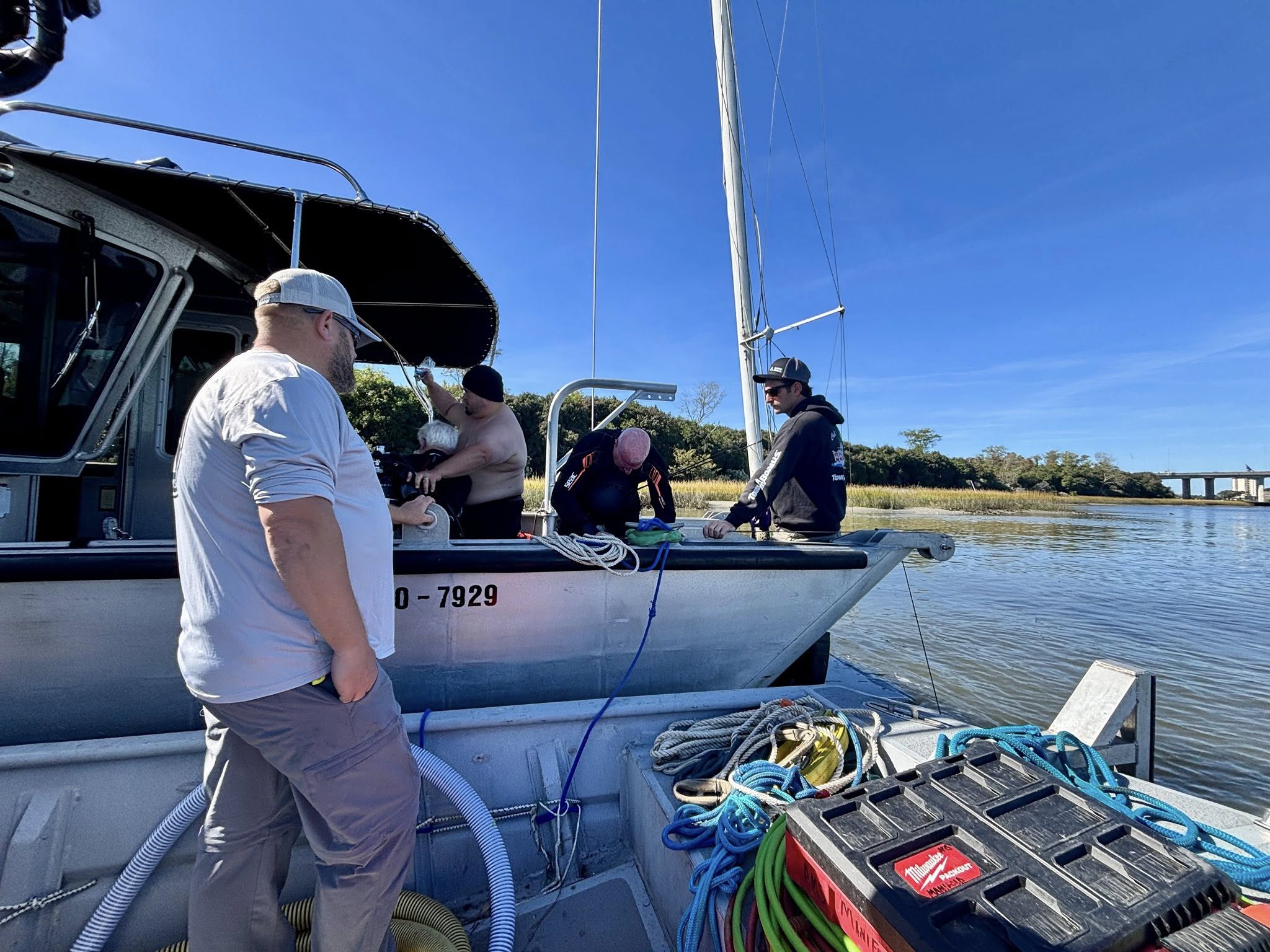 Towboat Charleston’s salvage dive team, Greg, Thomas, Bobby, Matt, and Jamie, volunteered their time to train the Charleston County Sheriff’s Department’s dive team on safe boat removals.